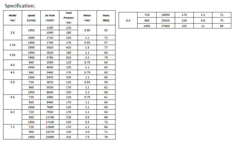 Air volume: 1450 m³/h-40000 m³/h